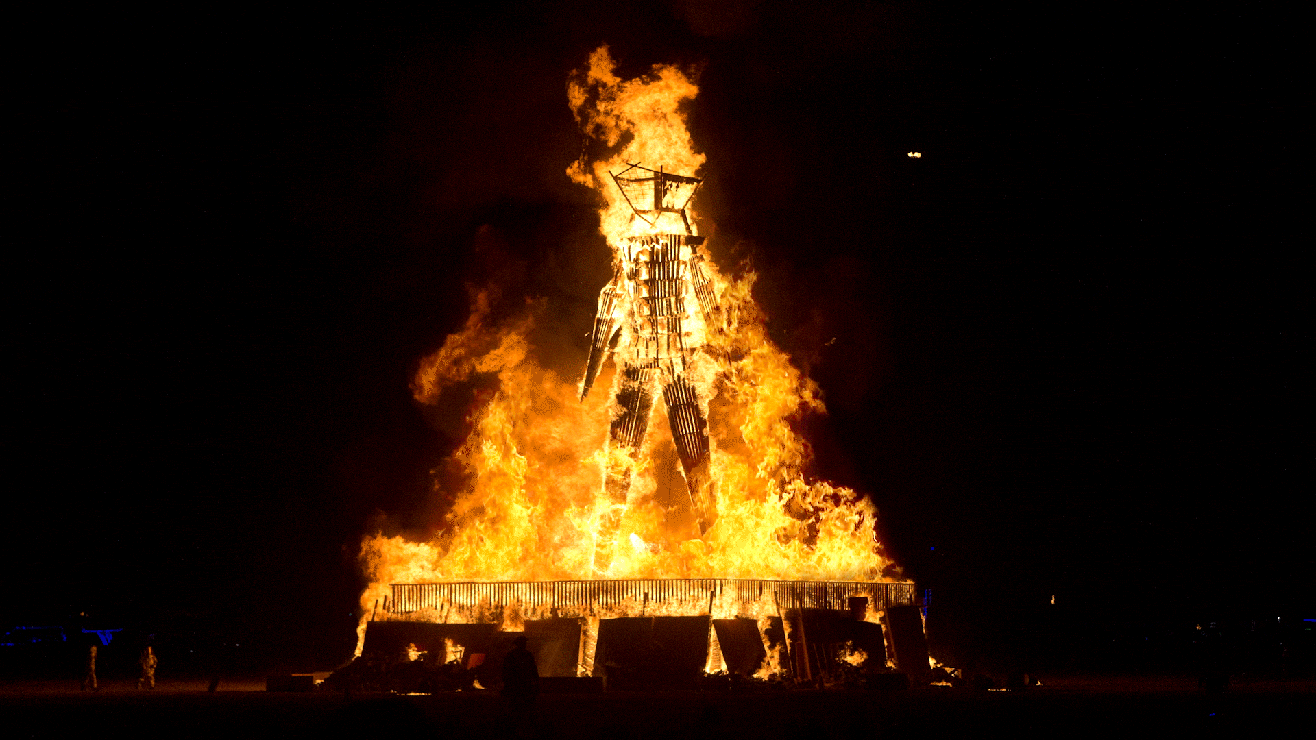 Nightfall and the ominous booming of electronic dance music summon new life to the playa.
